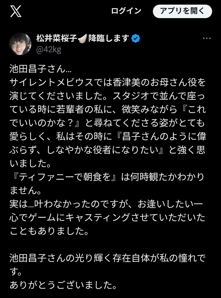 | … | 26無題Name名無し 26/03/13(金)20:17:12 IP:126.156.*(openmobile.ne.jp)No.1807376そうだねx5池田昌子さんも亡くなられるとは。涙 |