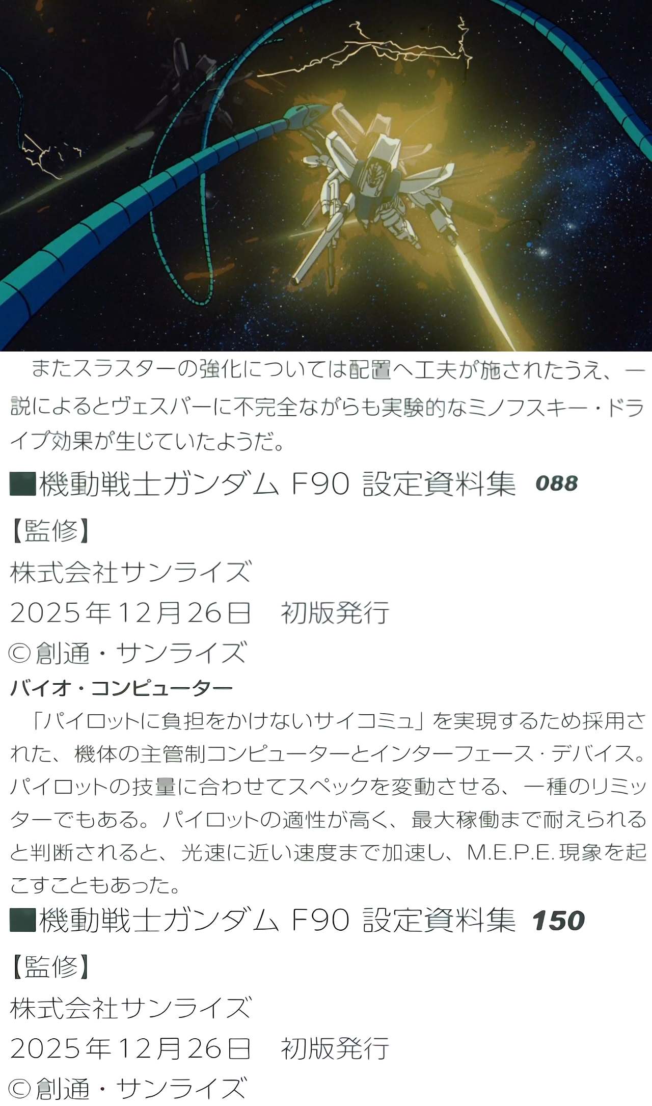 | … | 27無題Name名無し 26/01/24(土)21:33:26 IP:180.60.*(ocn.ne.jp)No.1805412+ミノフスキードライブの基礎理論自体はF91の頃にはあったんじゃなかろうか |
