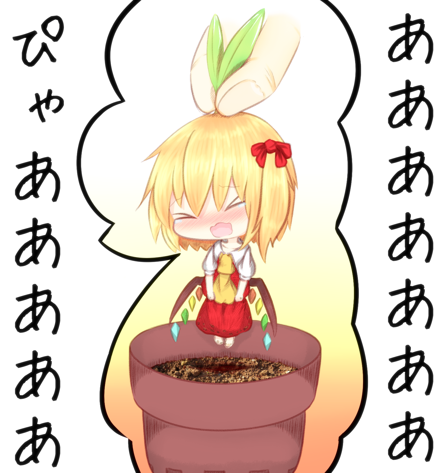 | … | 16無題Nameとしあき 26/04/08(水)23:01:59No.18227718そうだねx1 1775656919912.png-(1047422 B) 引き抜くとありとあらゆるものを破壊する悲鳴を放つフランドラゴラ |