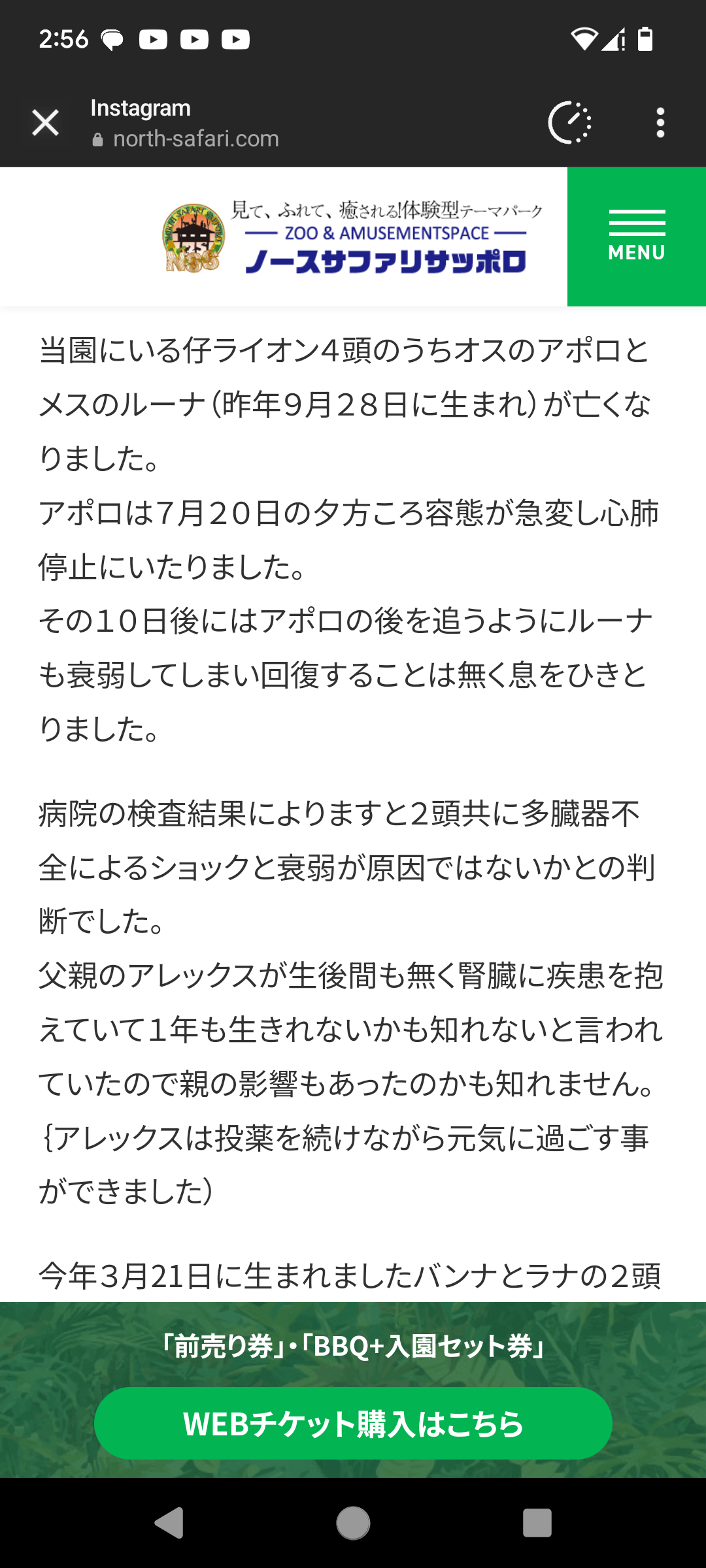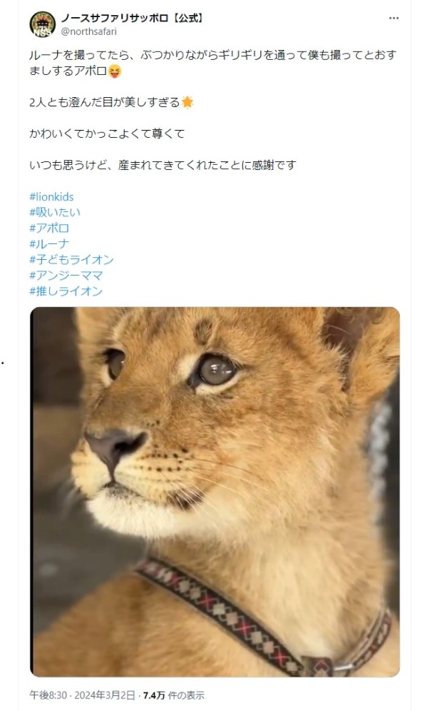 ノースサファリのアポロがなくなって、ルーナも体調を崩してるそうです。なんとか持ちこたえてほしい。