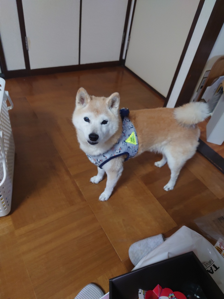 五月雨爺ちゃん下半身まひで後ろ足を引きずってしまい擦れた部分が床ずれ見たいになってきたのでこれ以上悪化しないようにカバーを付けてみました
