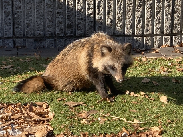 住宅街にタヌキが居た