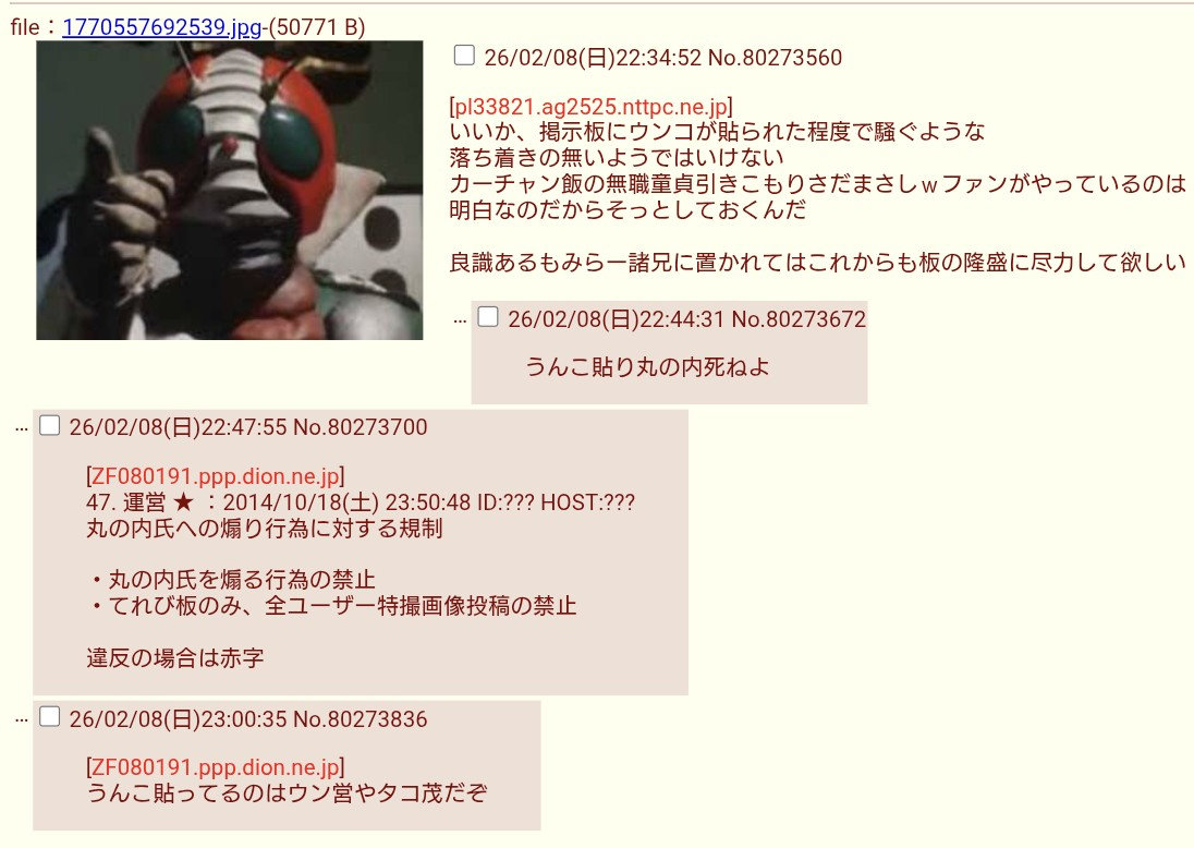 | … | 4無題Name名無し 26/02/20(金)08:32:24No.277771+茂雄、お前が一番鬱陶しいよ |
