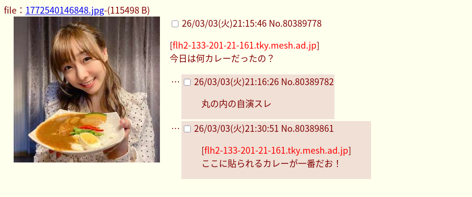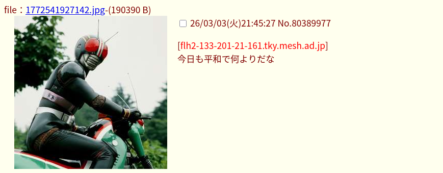 | … | 3無題Name名無し 26/03/02(月)21:31:20No.278696+ 1772454680810.jpg-(202027 B) 本文無し |