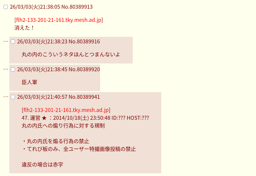 | … | 4無題Name名無し 26/03/02(月)09:49:04No.278624+スレッドを立てた人によって削除されました |