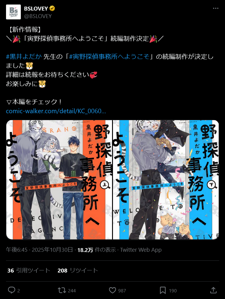 | … | 5無念Nameとしあき 25/10/31(金)23:24:00 ID:j4TrW8AUNo.25277838そうだねx3 1761920640602.png-(708410 B)  少し前にエッチな漫画のお勧めで名前の挙がってた寅野探偵事務所が続編決定との事でめでたい |