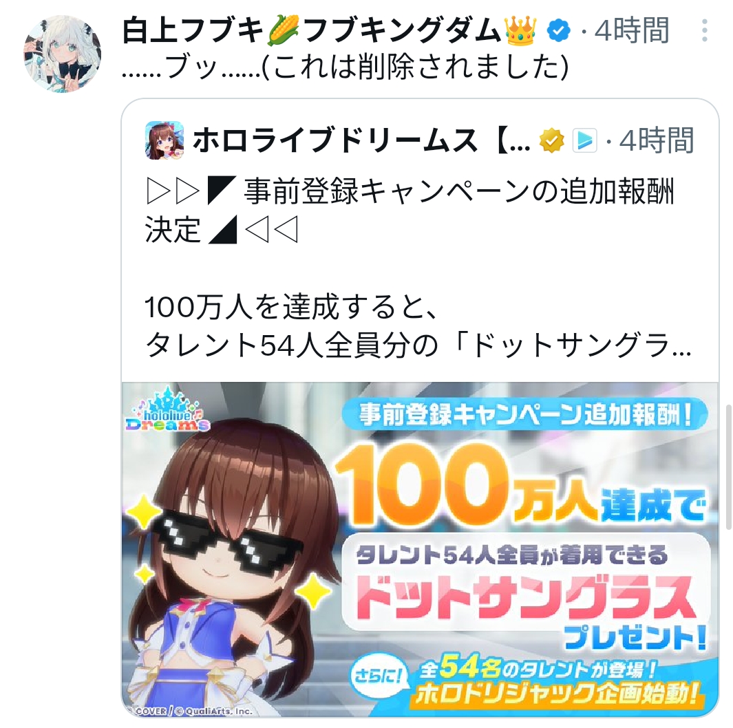 | … | 107無題Name名無し 26/03/29(日)12:04:19 IP:133.200.*(mesh.ad.jp)No.11771551そうだねx4ホロックス1stライブ2分足らずで一般完売! |