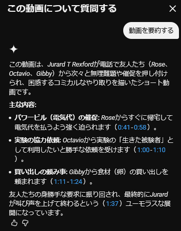 | … | 156無題Name名無し 26/04/01(水)18:16:01 IP:60.98.*(bbtec.net)No.11790627+ 1775034961352.png-(41217 B) 気づけばYoutubeの動画自体を要約してくれる機能ついてるね…めちゃくちゃありがたい |
