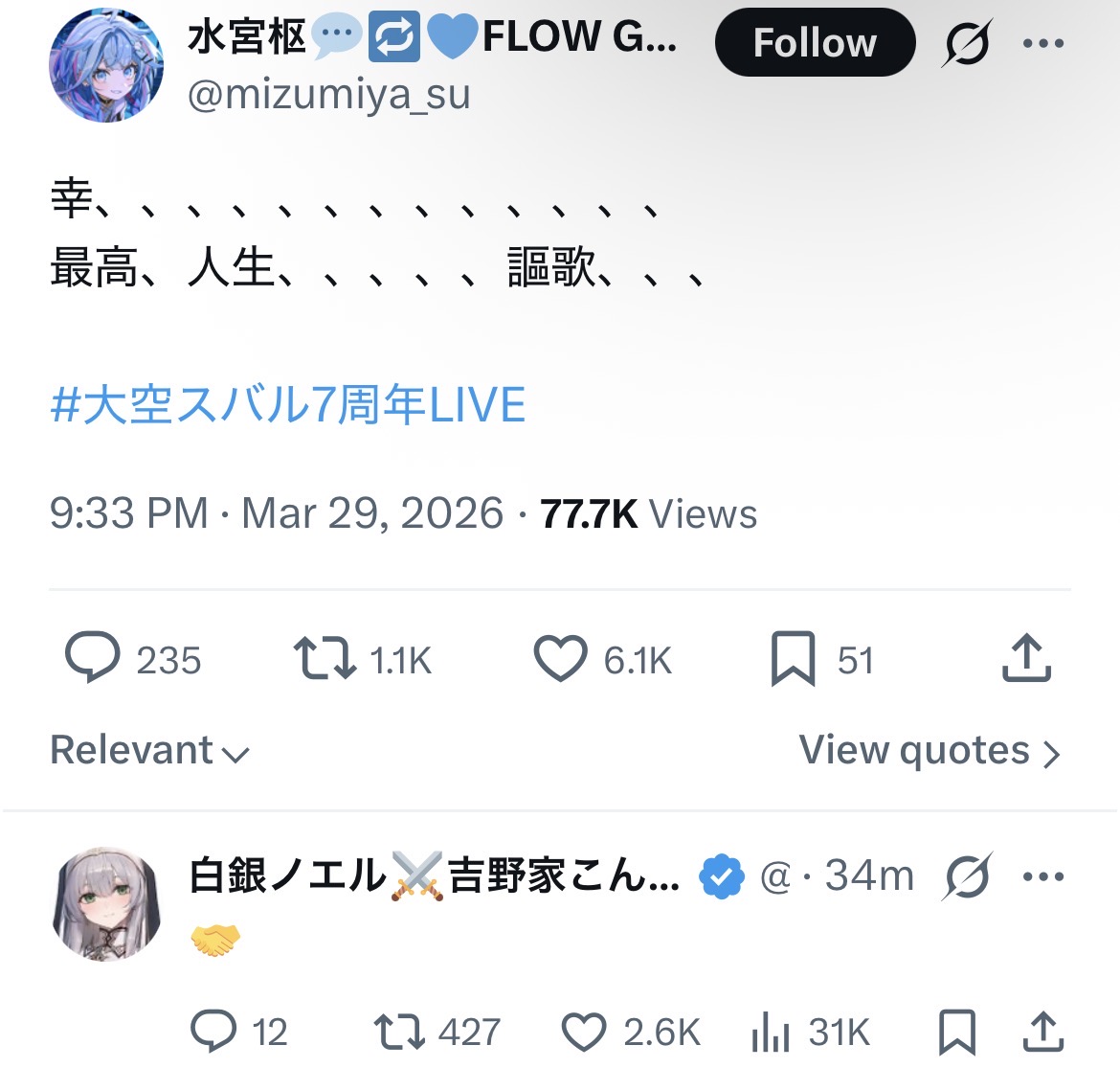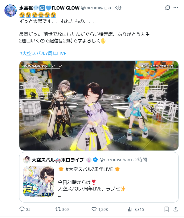 | … | 48無題Name名無し 26/03/30(月)06:54:09No.11779258そうだねx7>すぅちゃんはスバルのライブを見る事で邪悪な水宮が死んできれいな水宮に生まれ変わるサイクルで生きているという生態らしいな |