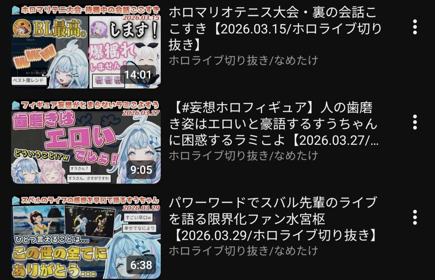 | … | 26無題Name名無し 26/03/28(土)14:14:45No.11763576そうだねx3>レベルが高すぎてこよりとラミィちゃんが付いていけてない… |