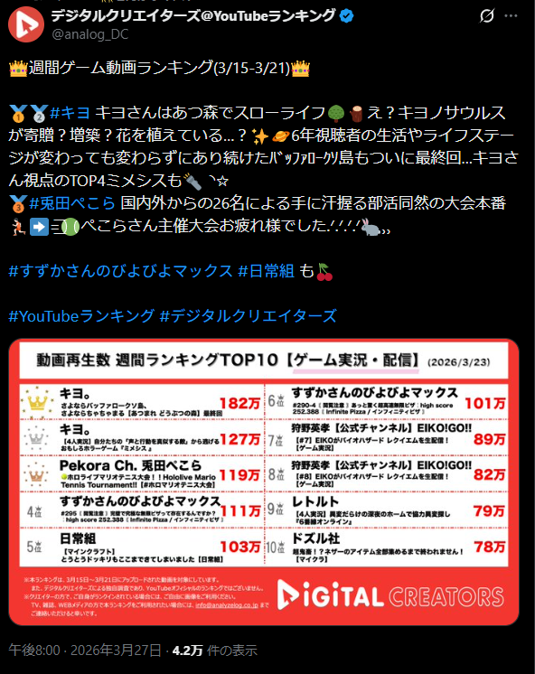990無題Name名無し 26/03/27(金)22:27:20 IP:27.140.*(home.ne.jp)No.11759042そうだねx1