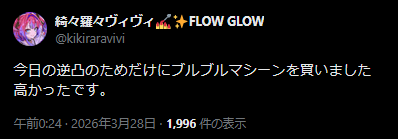 | … | 90無題Name名無し 26/03/28(土)00:36:32 IP:60.56.*(eonet.ne.jp)No.11761181+>あのブルブルマシーン逆凸のためだけに買ったんだ… |