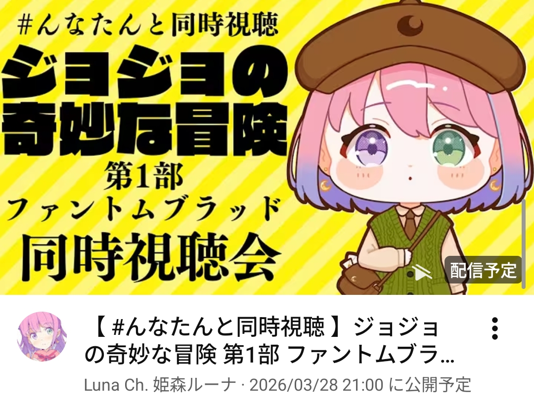 | … | 69無題Name名無し 26/03/28(土)00:30:26 IP:14.13.*(enabler.ne.jp)No.11761157+>明日もんなたんのジョジョがあるじゃあねえか! |