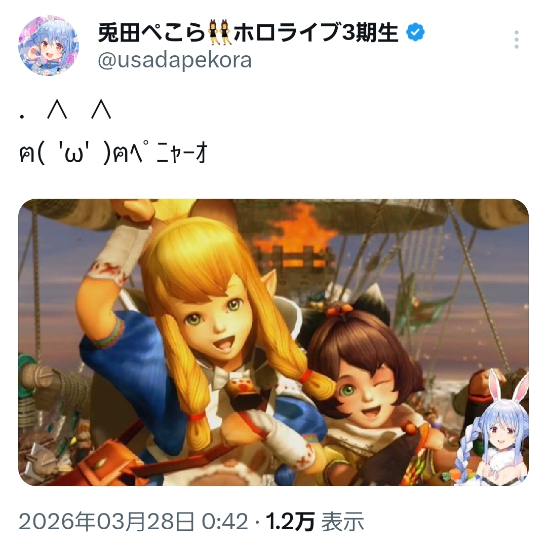 | … | 83無題Name名無し 26/03/28(土)00:33:35 IP:114.16.*(dion.ne.jp)No.11761173+ぺこちゃんこういうの好きなんだな… |