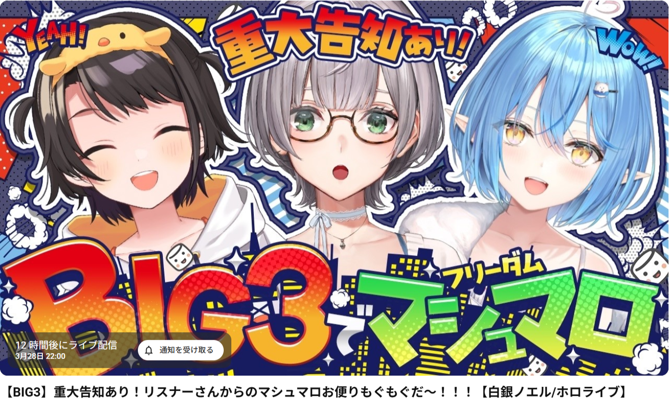 | … | 913無題Name名無し 26/03/28(土)11:14:08 IP:49.109.*(spmode.ne.jp)No.11762132+団長ラミィから話漏れてきてるが本当にBIG3楽しみにしてるんやなあ |