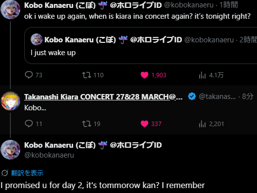 | … | 837無題Name名無し 26/03/28(土)15:24:47 IP:153.131.*(ocn.ne.jp)No.11764004そうだねx1 1774679087652.png-(55031 B) >コボ、ライブの時間勘違いしてました |