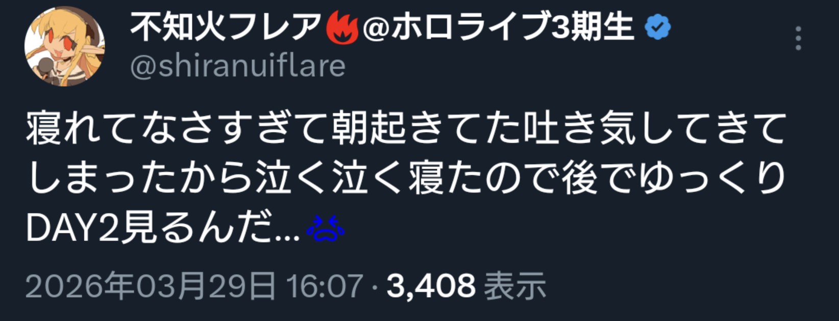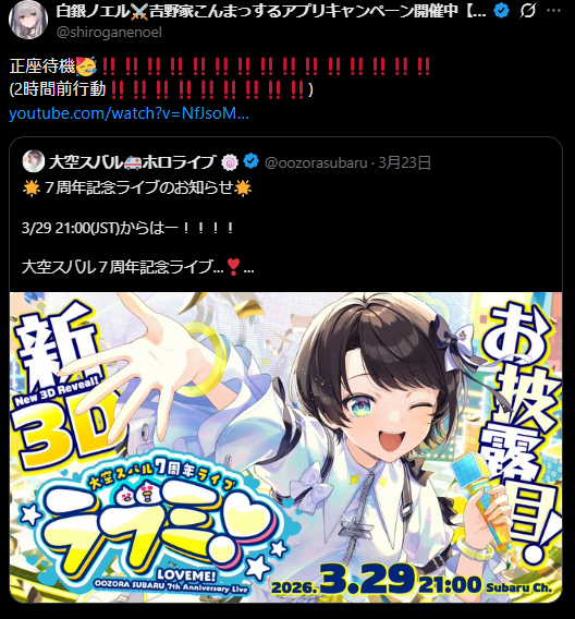 | … | 88無題Name名無し 26/03/29(日)16:22:42 IP:1.75.*(spmode.ne.jp)No.11773331そうだねx7 1774768962809.jpg-(125262 B) 推しを応援し続けるためにも自身の健康にも気を使わかなくてはならないな |