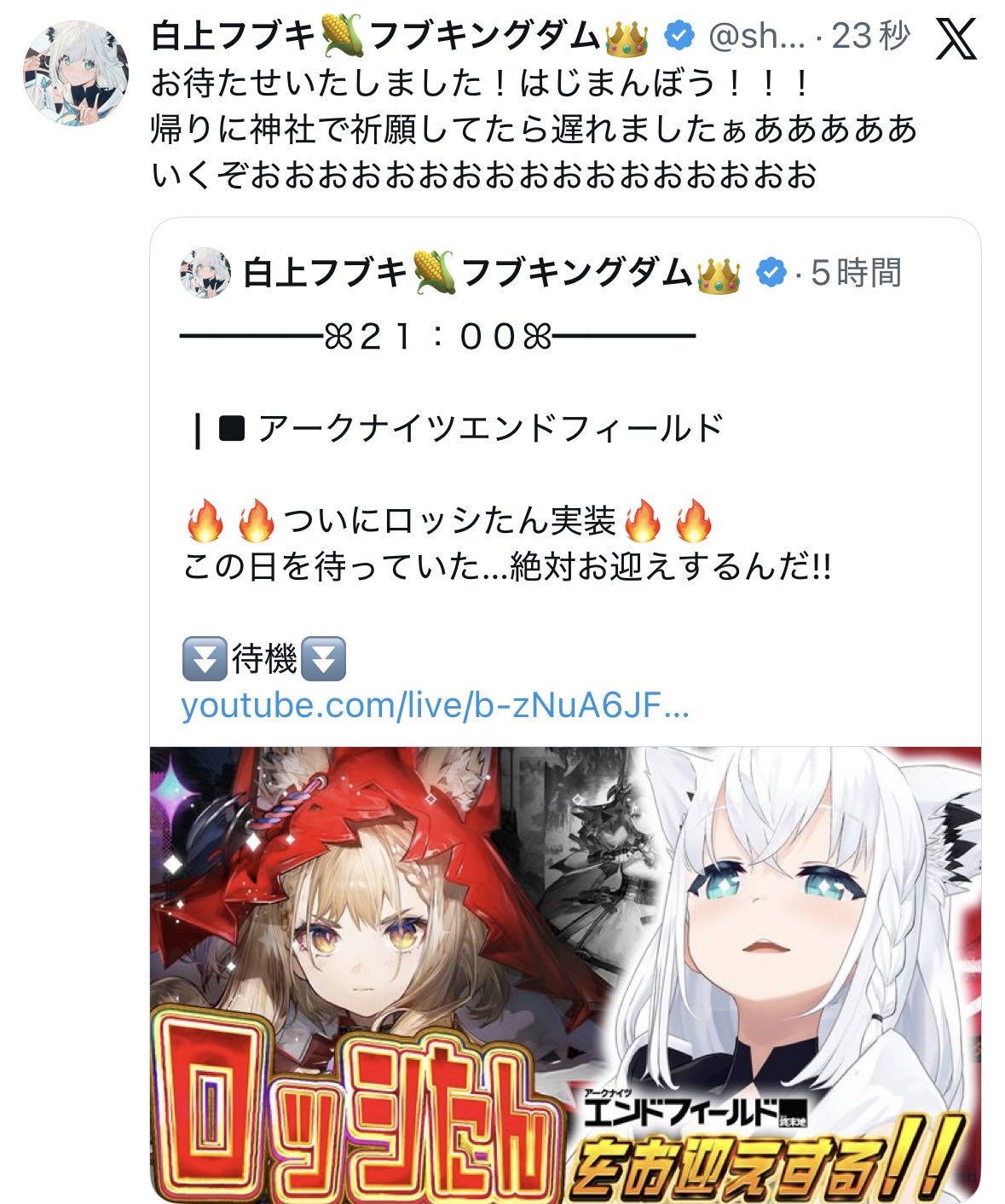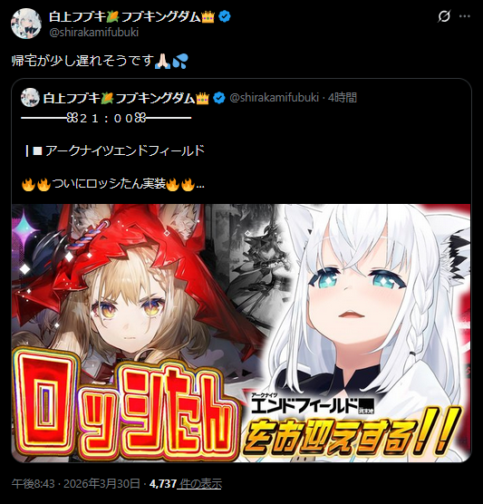 | … | 22無題Name名無し 26/03/30(月)19:51:57 IP:126.4.*(bbtec.net)No.11780604+白上やっっっとエンドフィールドの配信やるんか |