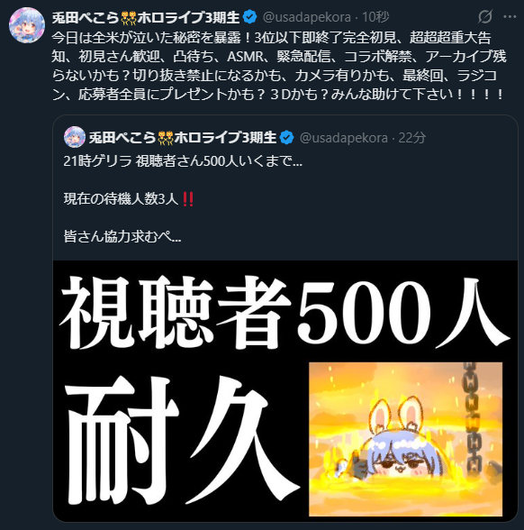 | … | 916無題Name名無し 26/03/30(月)21:17:59 IP:119.228.*(eonet.ne.jp)No.11781540+>団長の配信はアンケ数2万人に対して同接70人前後だから判定がマジで分からんな |
