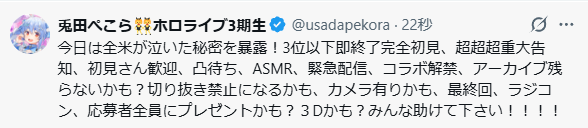 | … | 990無題Name名無し 26/03/30(月)21:22:09 IP:119.47.*(bbiq.jp)No.11781617+>今日はぺこら、団長、らでんがおかしい日だな! |
