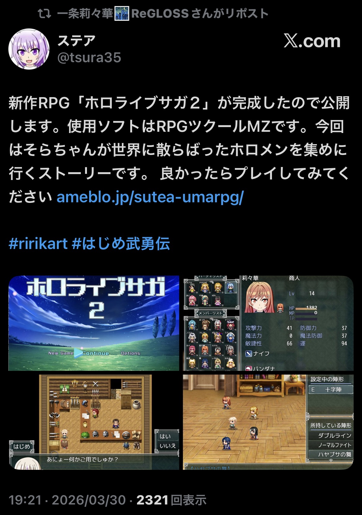 | … | 931無題Name名無し 26/03/30(月)21:18:56 IP:49.109.*(spmode.ne.jp)No.11781555そうだねx3 1774873136615.jpg-(409868 B) りりーかのホロインディーになってないファンゲームのリポスト助かる |