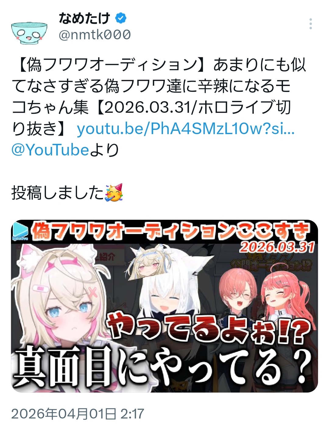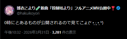 | … | 46無題Name名無し 26/03/31(火)22:28:13 IP:133.200.*(mesh.ad.jp)No.11788968そうだねx2素晴らしい配信だった |