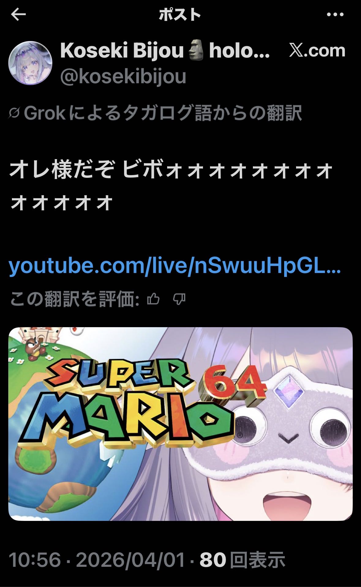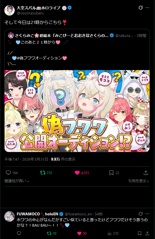 | … | 83無題Name名無し 26/03/31(火)22:30:14 IP:58.183.*(megaegg.ne.jp)No.11789005+ついに任天堂もホロぐらに追いついたか… |