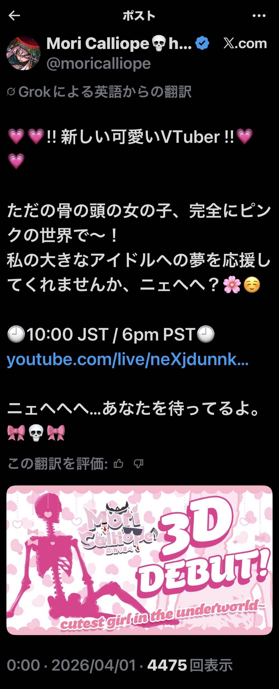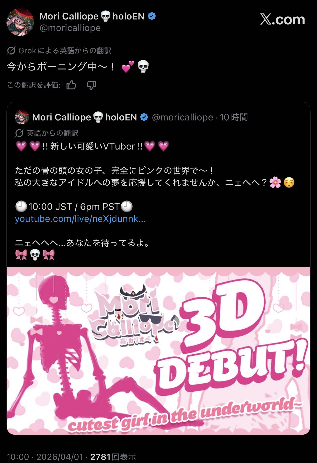 | … | 914無題Name名無し 26/04/01(水)10:11:50 IP:219.100.*(ipv4)No.11789960+No1Kawaiiスケルトンアイドル |