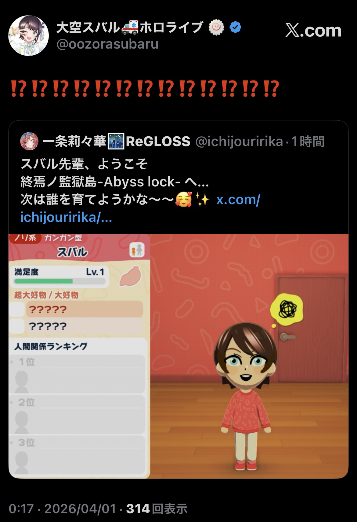 | … | 35無題Name名無し 26/03/31(火)22:27:33 IP:153.222.*(ocn.ne.jp)No.11788955そうだねx3 1774963653037.png-(975652 B) たておつ |
