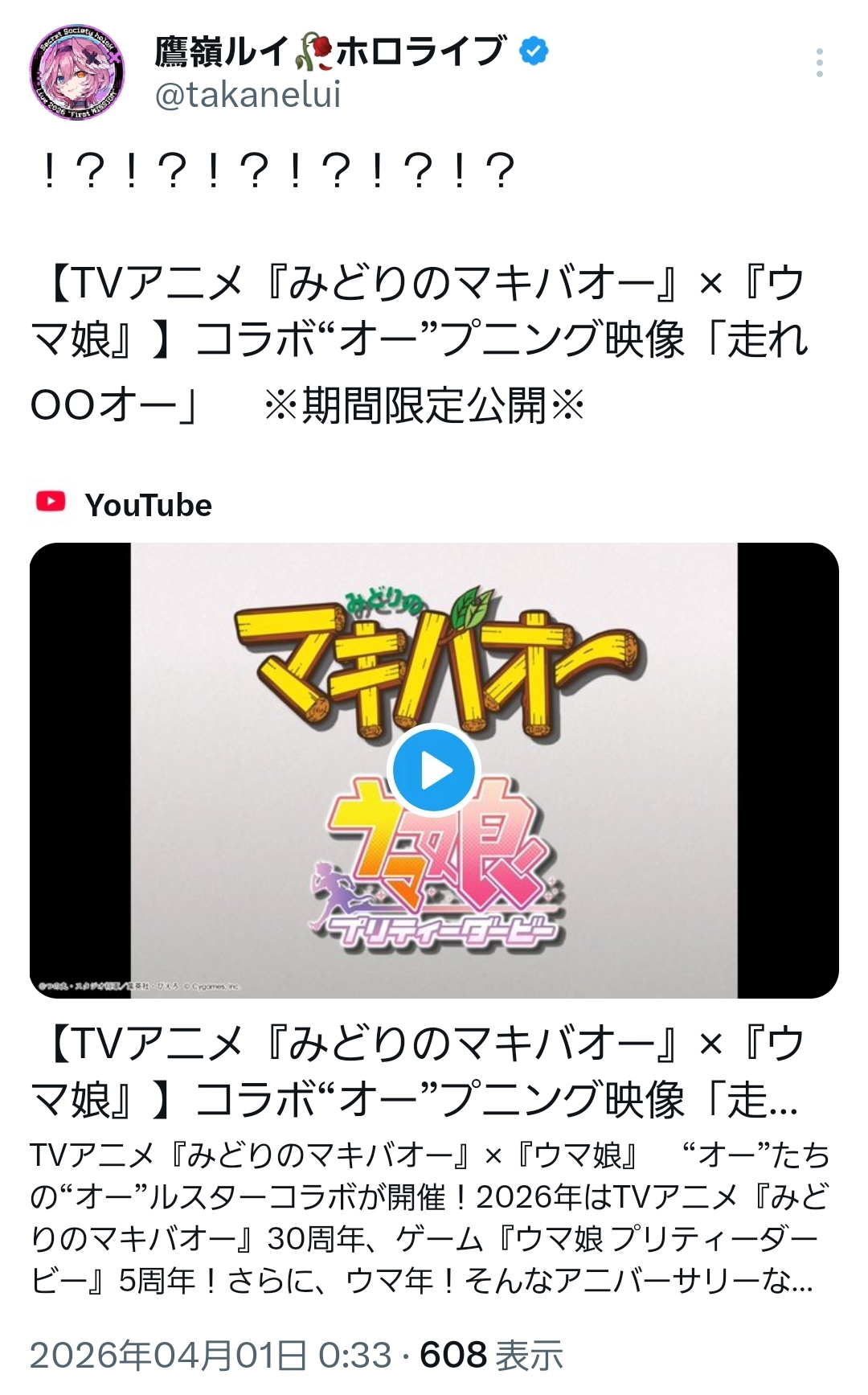 | … | 26無題Name名無し 26/03/31(火)22:27:13 IP:133.206.*(mesh.ad.jp)No.11788945そうだねx3>ルイイお姉ちゃんも見たかったな |