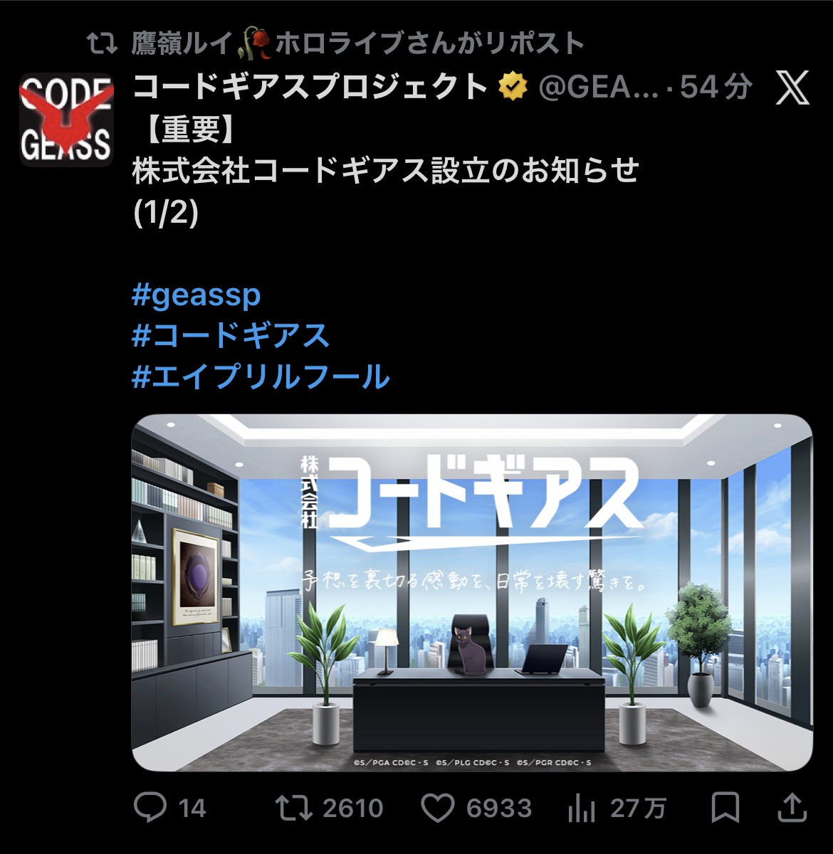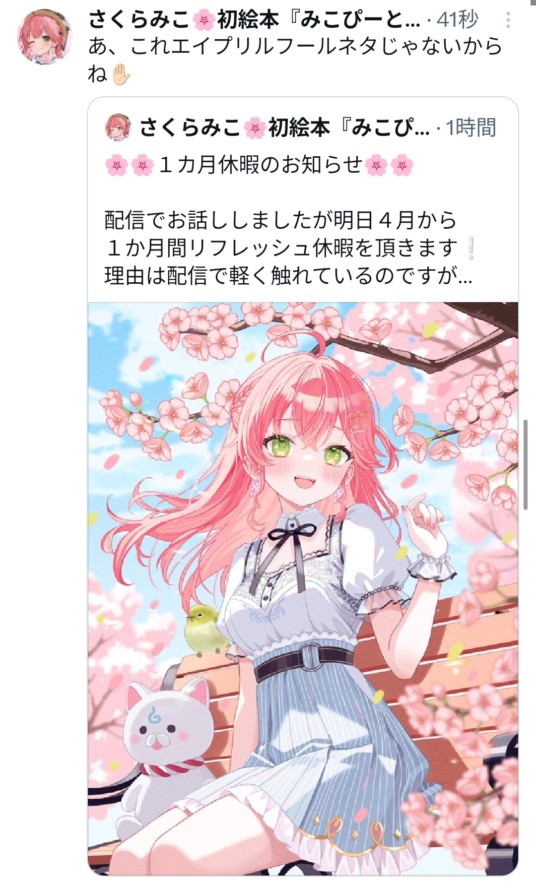 | … | 942無題Name名無し 26/04/01(水)10:28:16 IP:49.109.*(spmode.ne.jp)No.11789990+なんかコメントにいるエイプリルフールは午前だけみたいな注意喚起 |