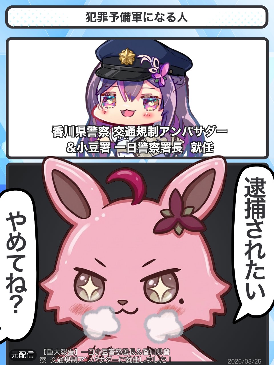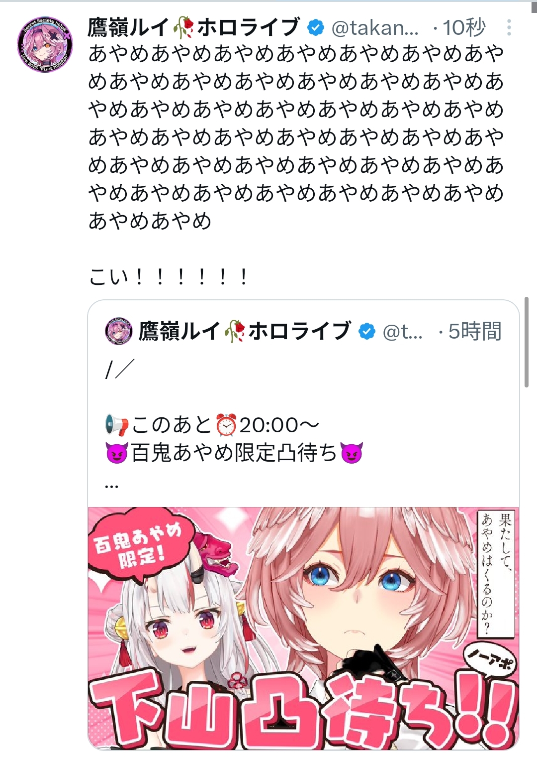 | … | 47無題Name名無し 26/04/01(水)19:49:19 IP:160.86.*(nuro.jp)No.11792217+初配信で歌と重大告知とかころさん並みにセオリーを踏み外してるな |