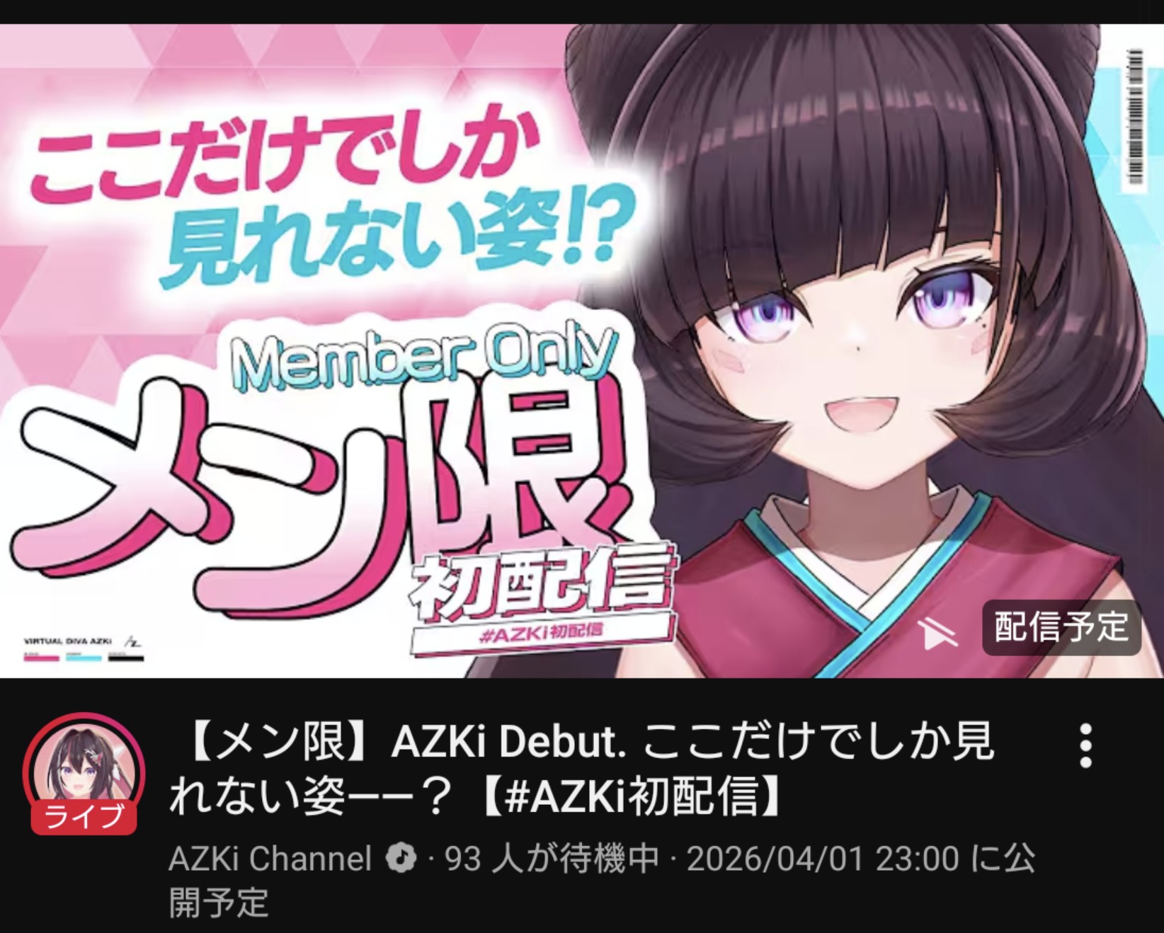 | … | 28無題Name名無し 26/04/01(水)19:48:52 IP:121.81.*(eonet.ne.jp)No.11792198+あずきち初配信だけど重大発表が2つあります |