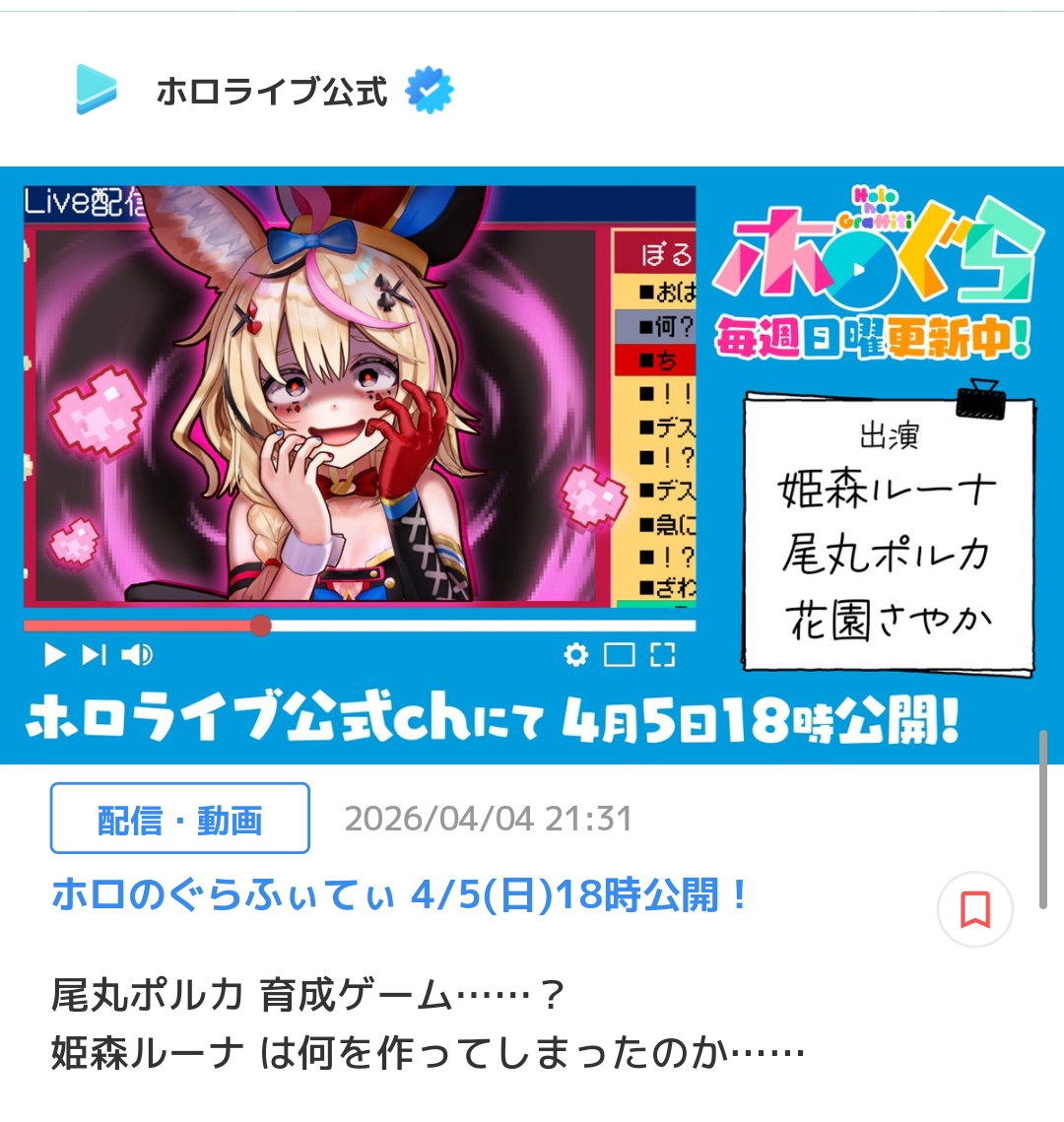 | … | 933無題Name名無し 26/04/04(土)22:26:39 IP:133.106.*(ipv4)No.11817632+「ラミィとノエたんはビジュアルが教育向けじゃないというご意見もいただいたんですけどその点スバルはめっちゃ向いてる」 |