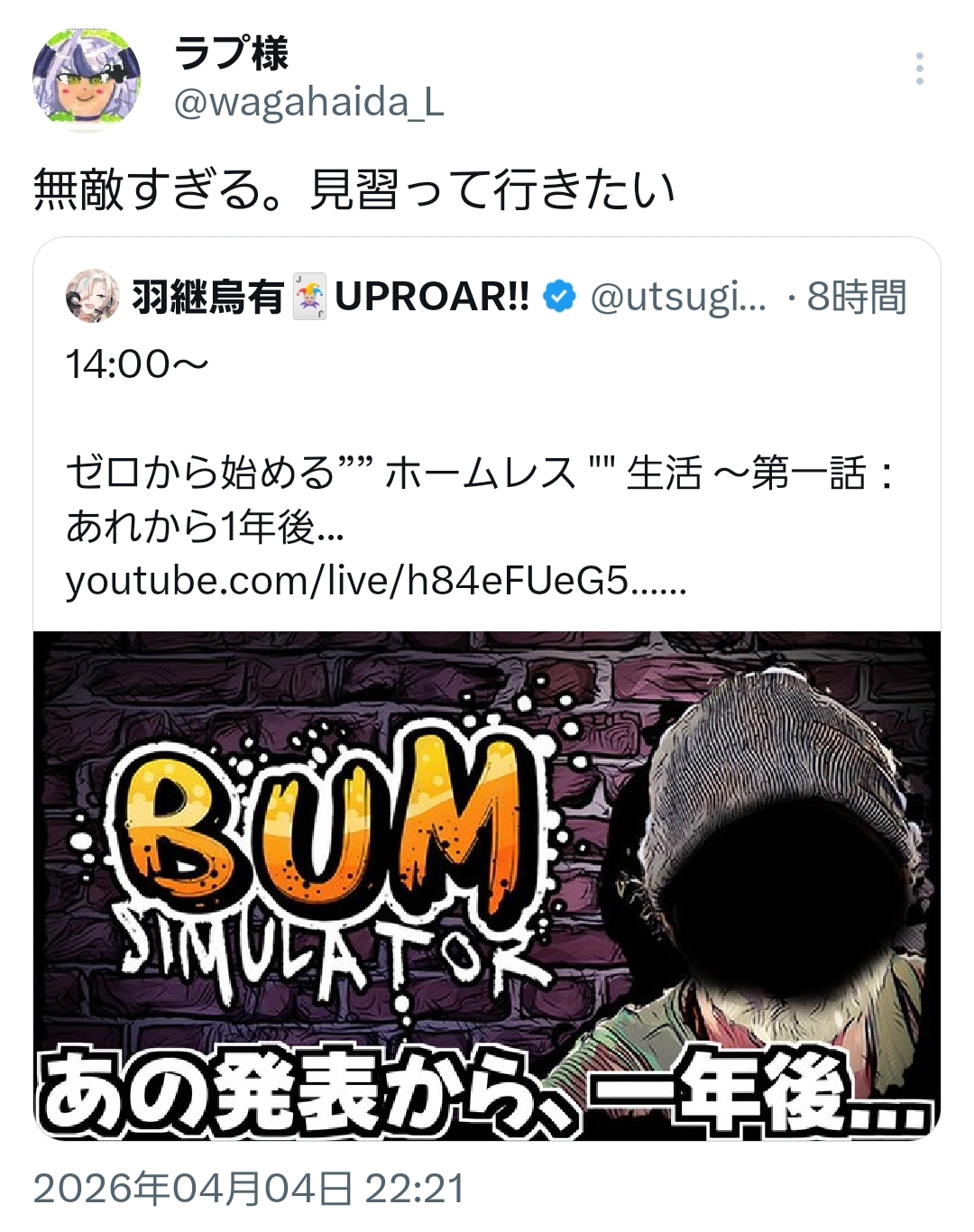 | … | 971無題Name名無し 26/04/04(土)22:29:47 IP:106.146.*(au-net.ne.jp)No.11817671そうだねx1 1775309387901.jpg-(539226 B) 配信時間見てると色々発見があって面白い |